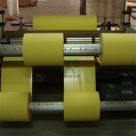 黃色離型紙復合,客戶用途包裝晶片。要求離型紙復合pe膜,再切片使用。